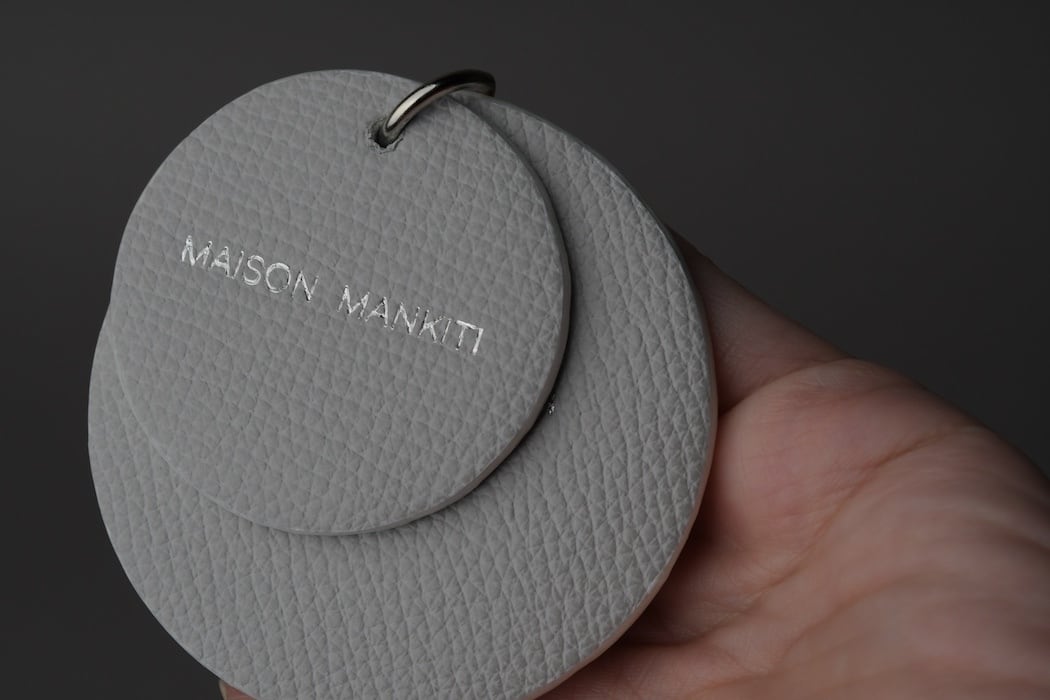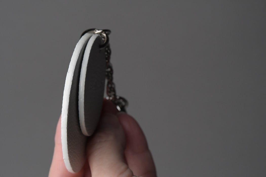 ・明るく柔らかでやさしい雰囲気のライトグレーのバッグチャーム