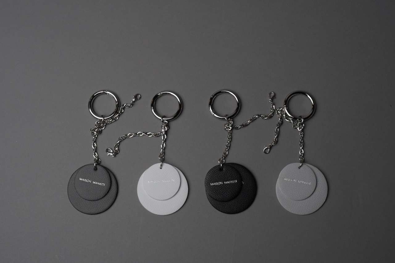・型押しレザーのチャームと真鍮の二重リングでラグジュアリーさも兼ね備え、いろんなチャームをデコレーショしやすい丸カラビナも付いています
