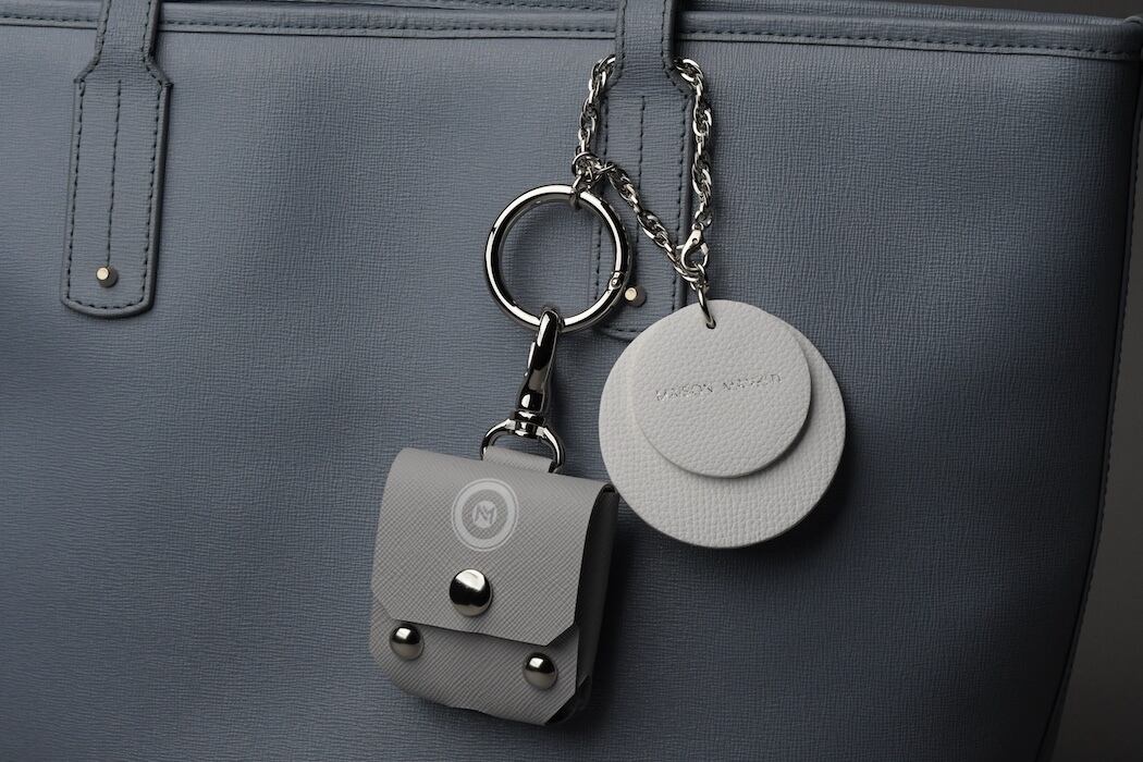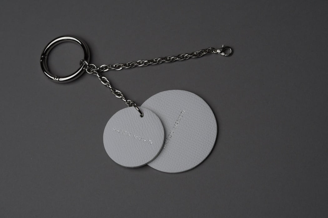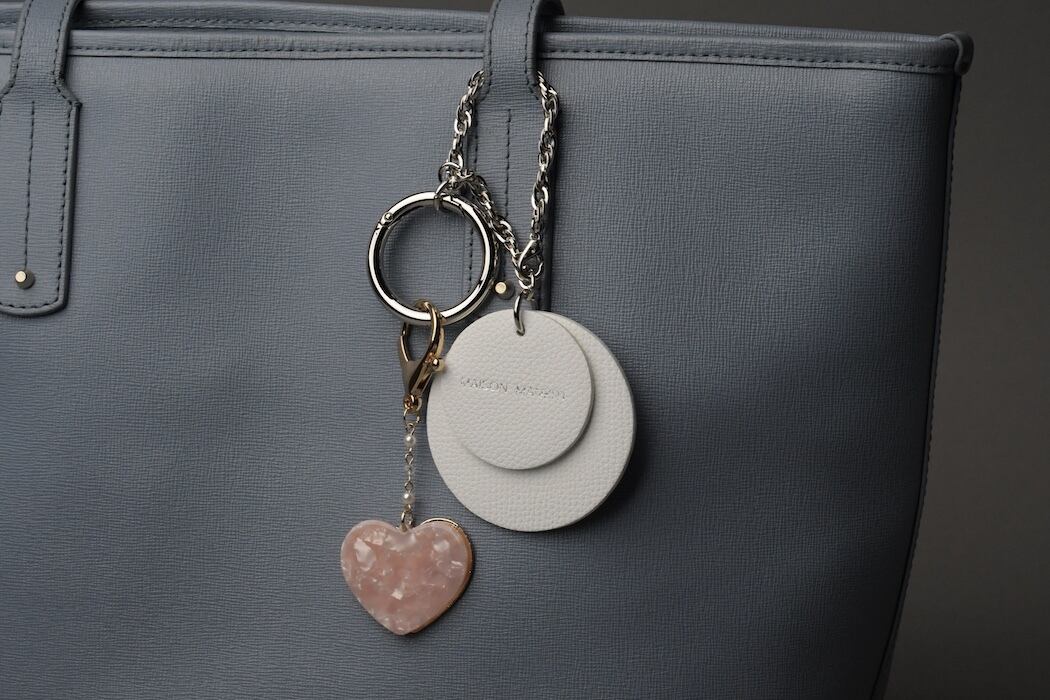 ・太い持ち手にも無理なく付けられるカニカン付きチェーンも付属しているので、どんなバッグにも付けられます