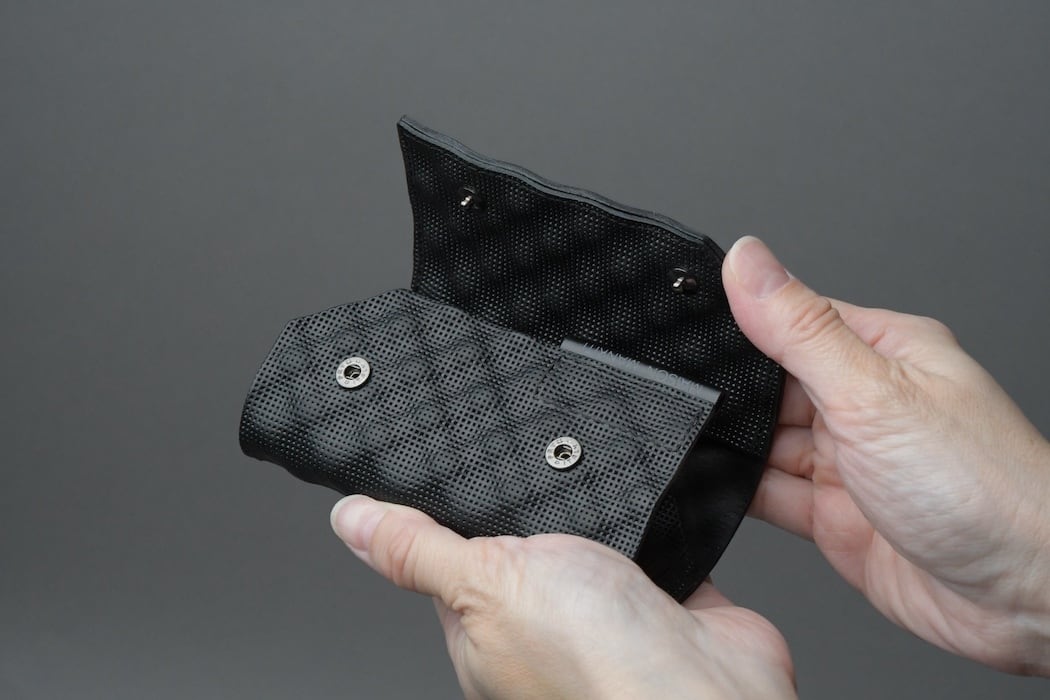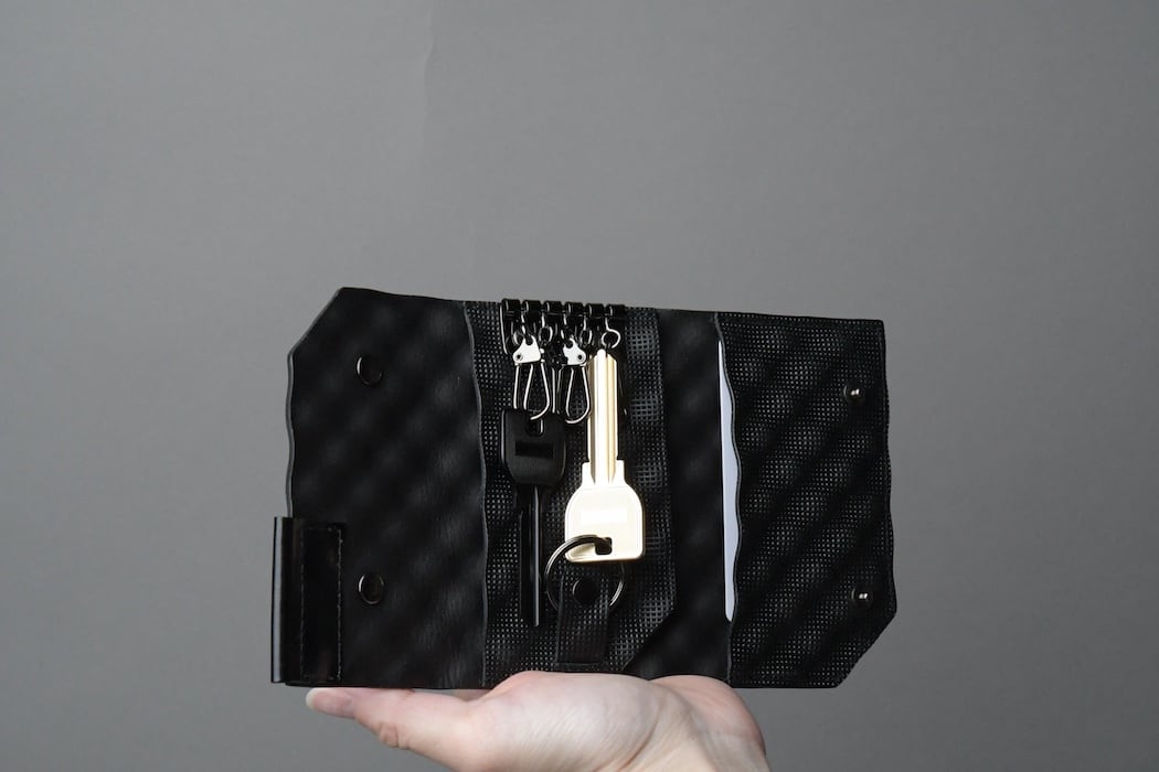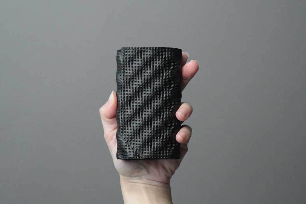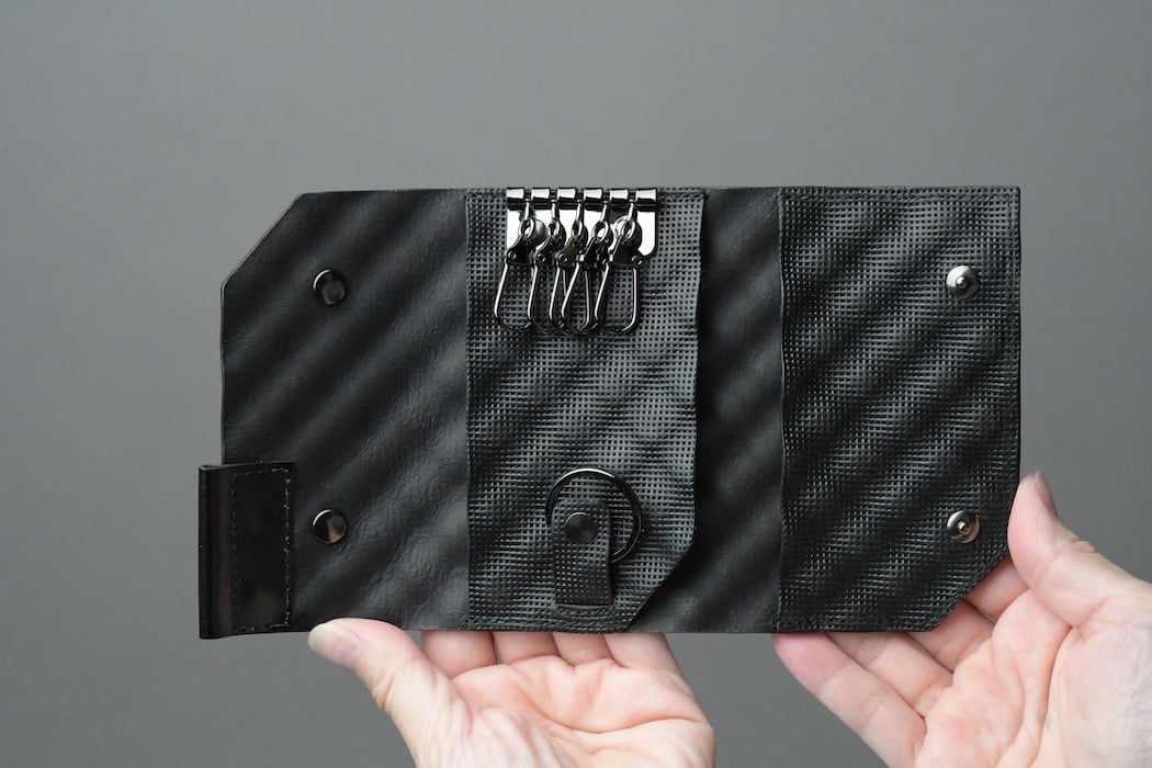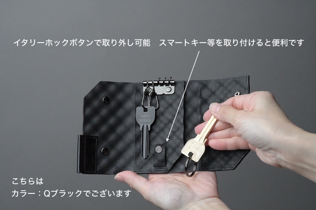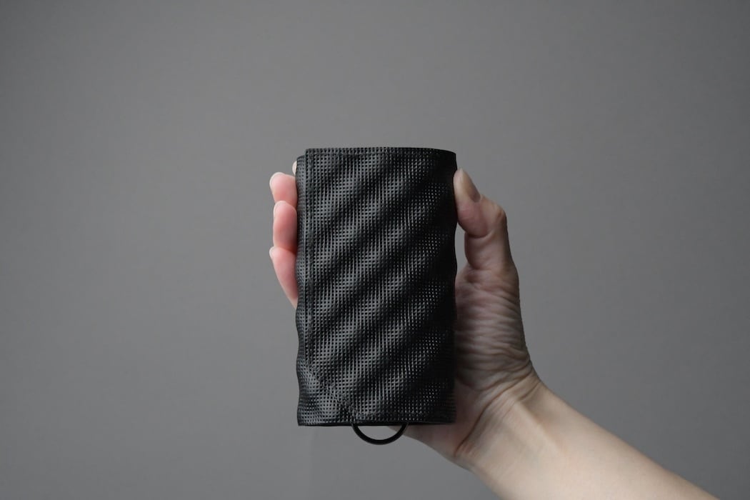 ・ワッフルのような2cm四方の凹凸が規則正しく型押しされている、世界でも珍しい革のキーケース