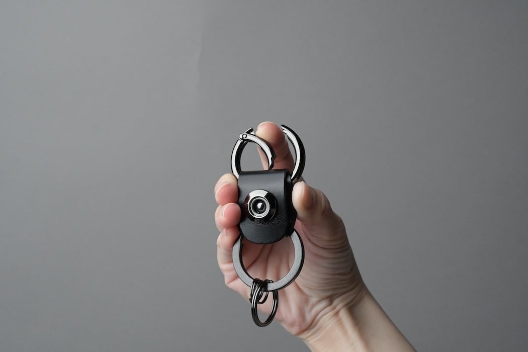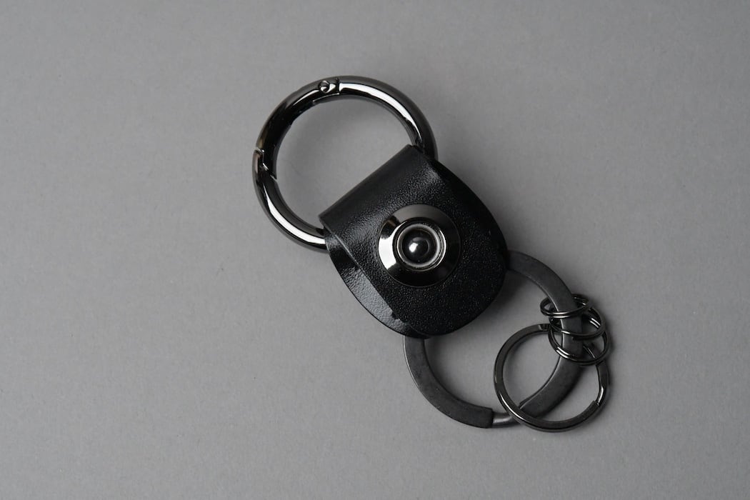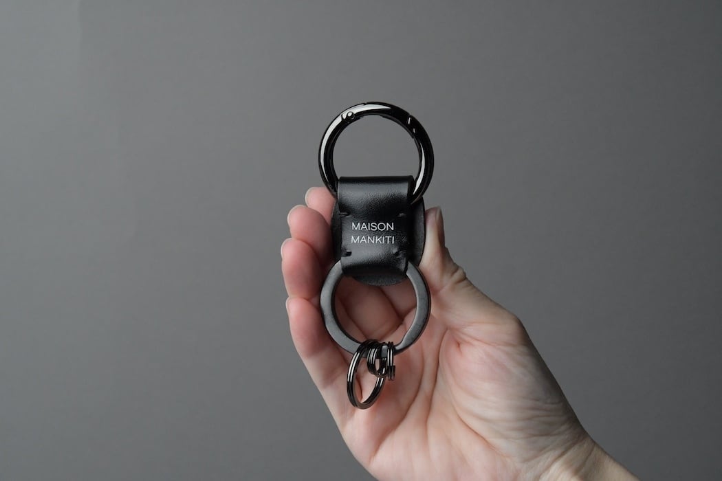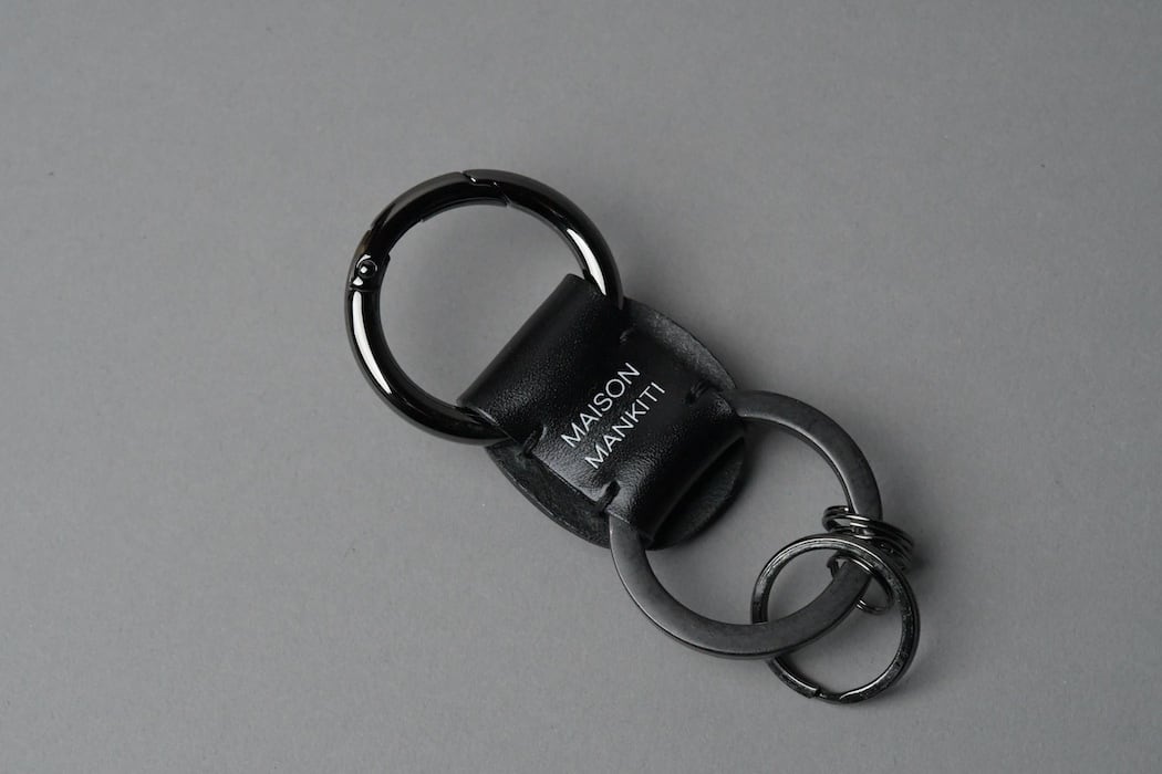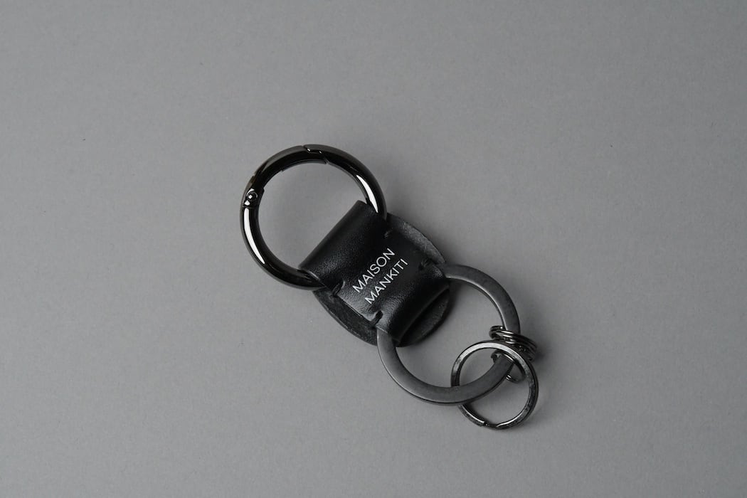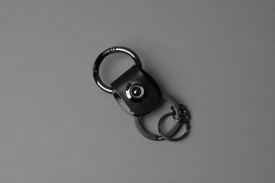 ・革、金具もブラックメッキのクールモダンのカラビナキーリング