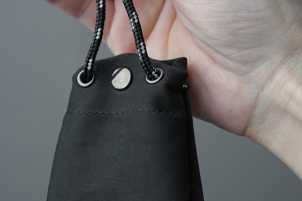 ・開閉部にプリムホックボタンがあり、巾着を閉めなくても閉じることができます