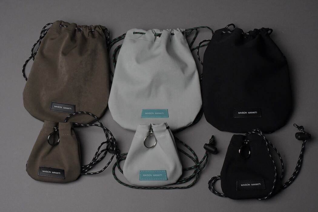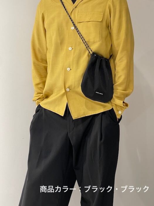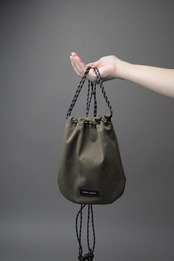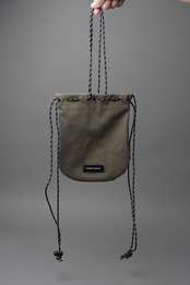 ・スエード調のハイスペック素材 高密度ミリクロスを少しモードなフォルムに落とし込んだミドルサイズ巾着バッグ