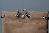・裏面の巾着の紐を通す箇所にハトメ金具を取付け、開け閉めによる生地の負担を減らしています