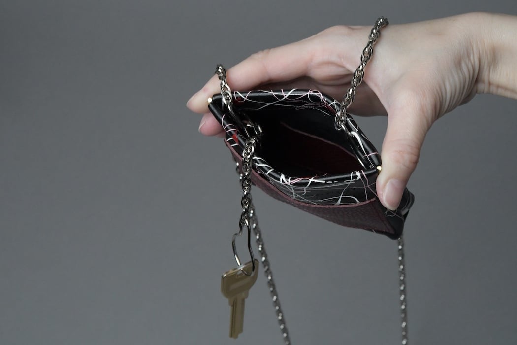 職人によるランダムなハンドペイントを施した、一点もののコインケースです。