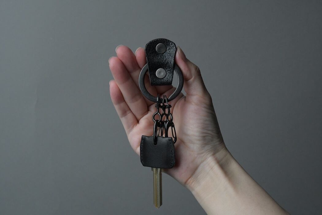 これは一度、銅メッキした後に、表面を薬品で化学反応させ渋みのある黒色の皮膜をつける手の込んだ処理方法で、使っていくうちに段々と下地の銅色が薄っすらと浮かび上がり、これもまた味わい深く革に馴染みます。