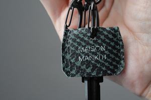 ダークグリーンのチドリ柄のキーキャップがセットのキーリングです。