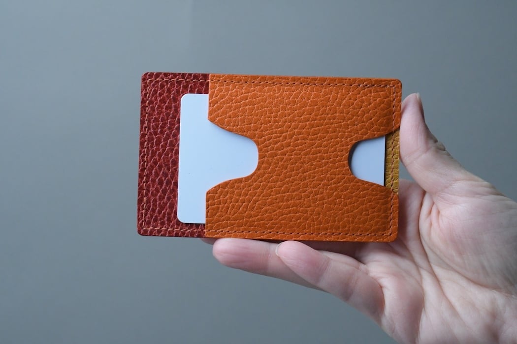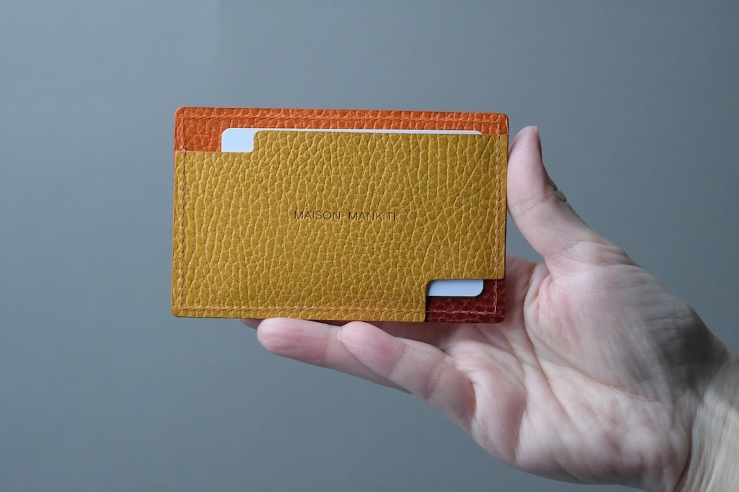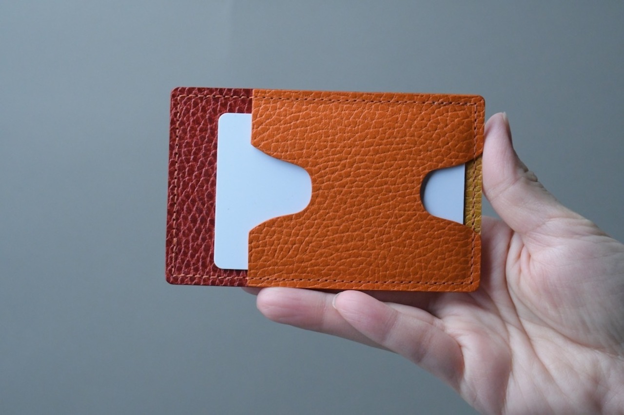 表のポケットにはカードが2~3枚程度収納可能で、裏のポケットには名刺や定期など一目で分かるスリットを備えています。