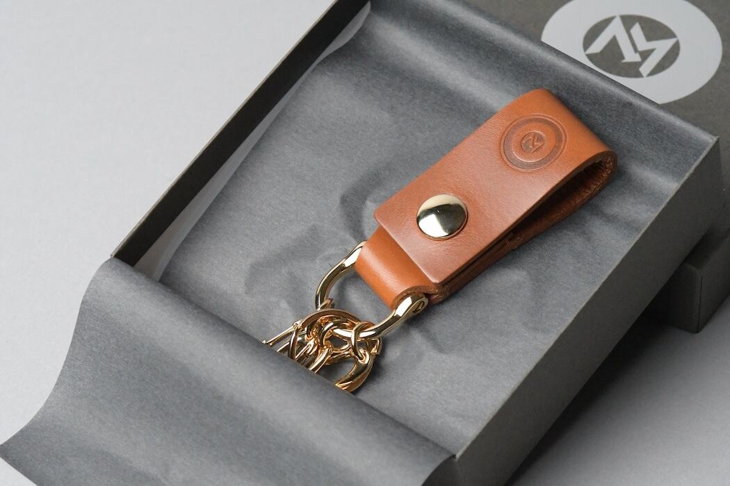 ベルギーレザー サドルプルアップを使用したベルトループタイプのキーホルダー。