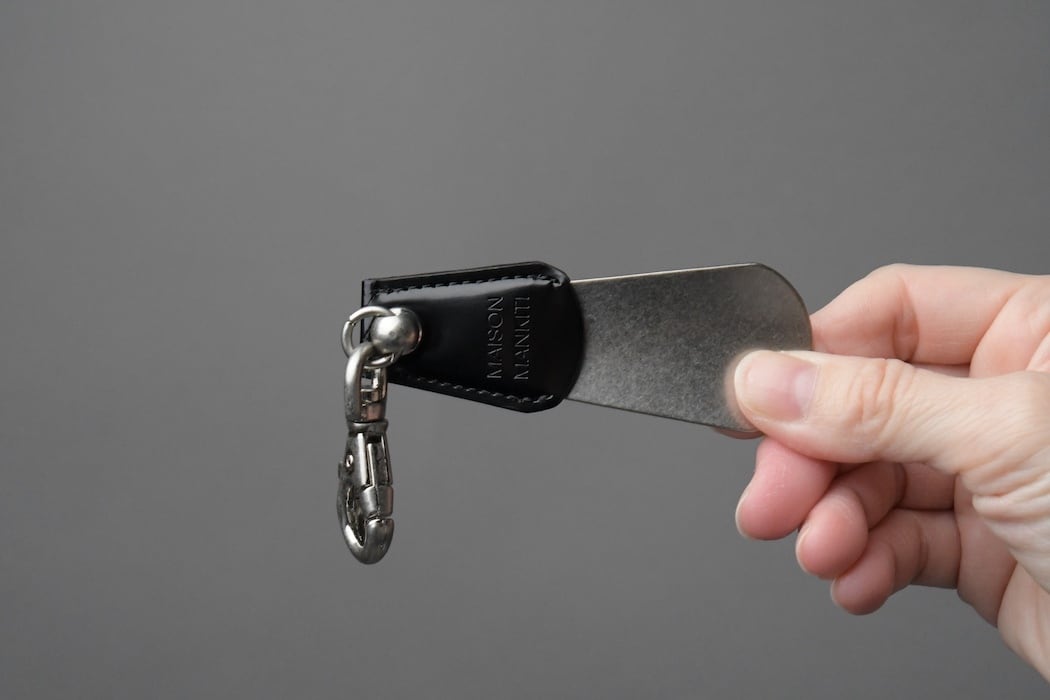 イタリアンレザーの携帯用Shoe Horn<靴べら>です。