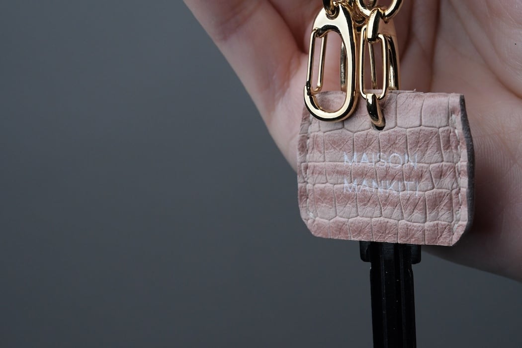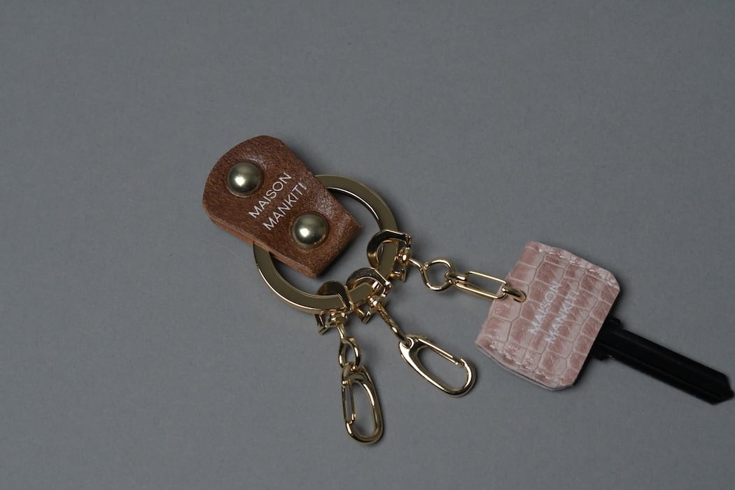 型押しのペールピンクのキーキャップがセットのキーリングです。