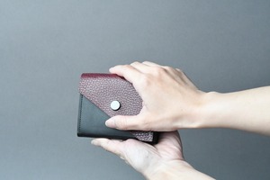 型押しのワイン・ブラック・ワッフル型押しブラックのカラーがシックな印象のコンパクト財布。