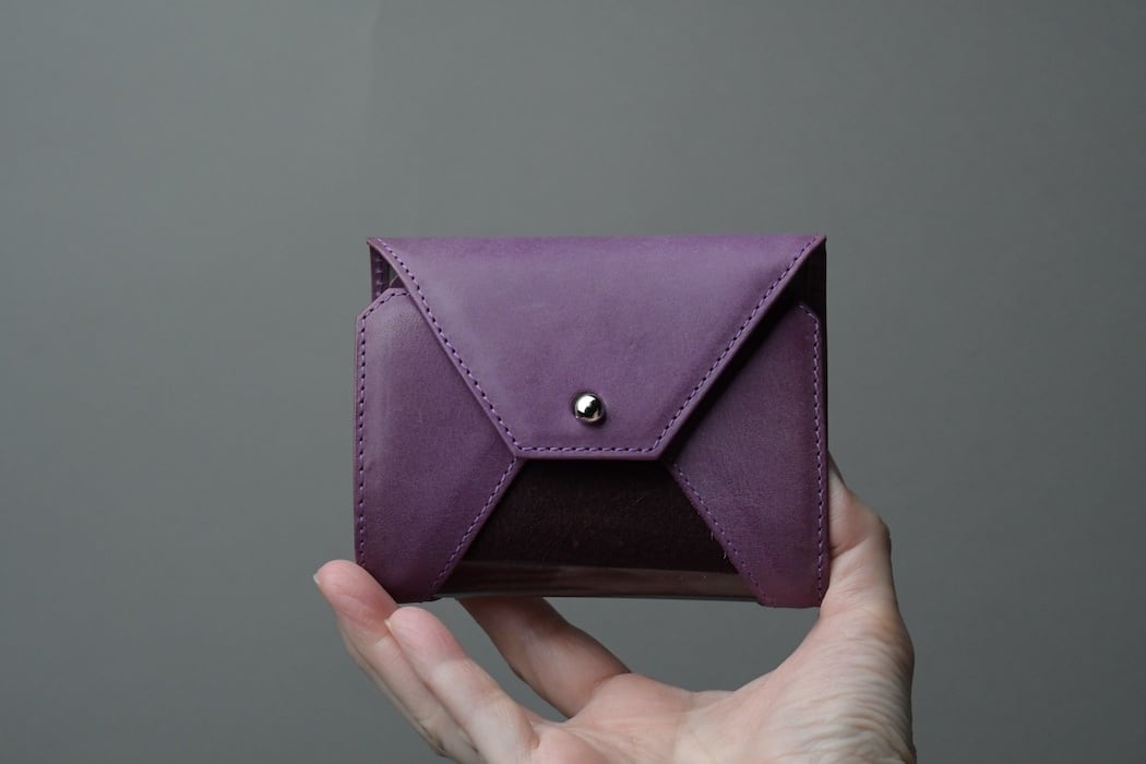 お札を入れると菱形PVCからお札の一部がみえるPVC・レザー財布。