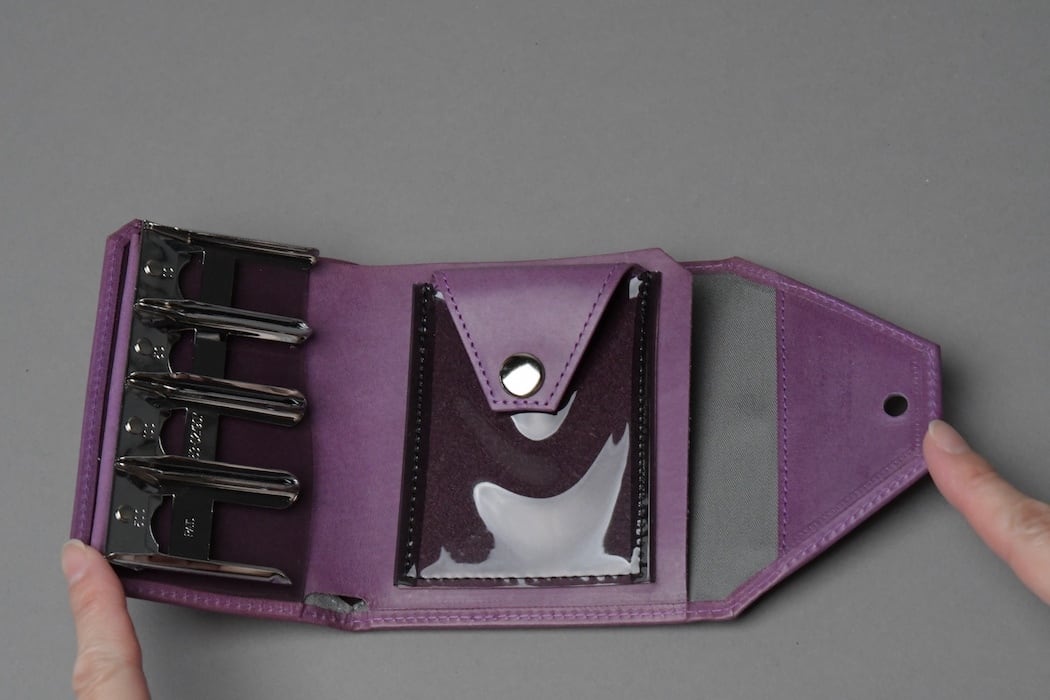 ギボシ留の金具を使用しており、その特性上留め具で閉じていても左右の縦幅に動きが見られます。