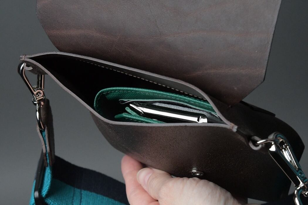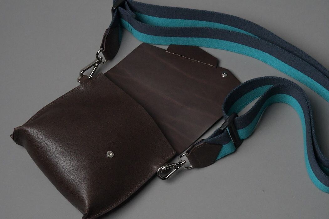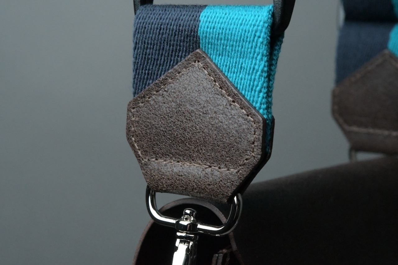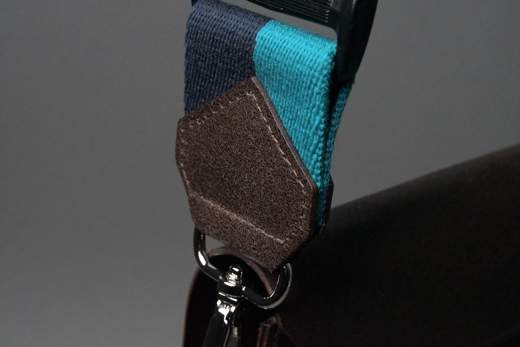・ショルダーの長さは約92〜159cmと伸長幅があり、幅も5cmと幅広でダークブルー・ターコイズブルーの2トーンカラーで革とも馴染むお色です